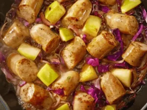 This German-style chicken sausage with cabbage brings Oktoberfest vibes to dinner any time of year.