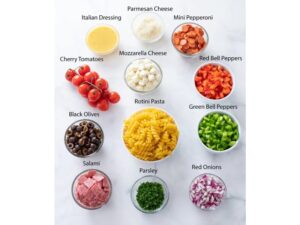 If you don’t know the basic ingredients for how to make pasta salad with Italian dressing. Then below I have mentioned some ingredients.