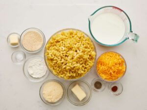 Here’s your shopping list for the macaroni and cheese recipe, and don’t add anything else: